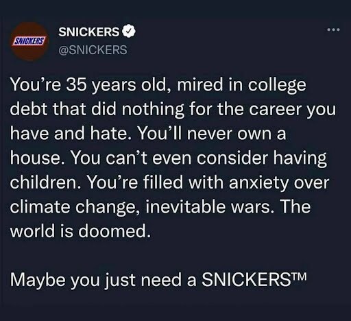 btw fuck all these corporation social media accounts trying to be funny. Its become the norm by now, but fuck em all.