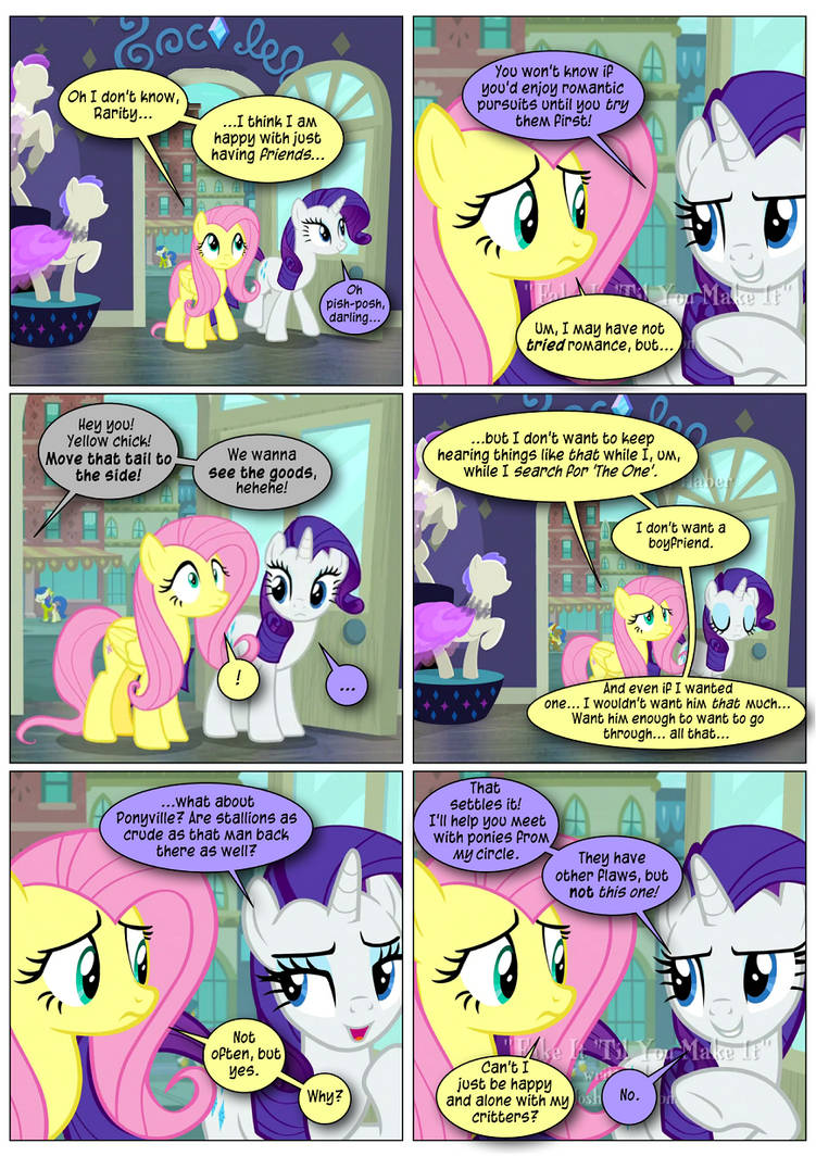 Rarity has different opinions than Shy about romance/relationship/lifestyle matters, but she does not fear Fluttershy’s loner lifestyle.