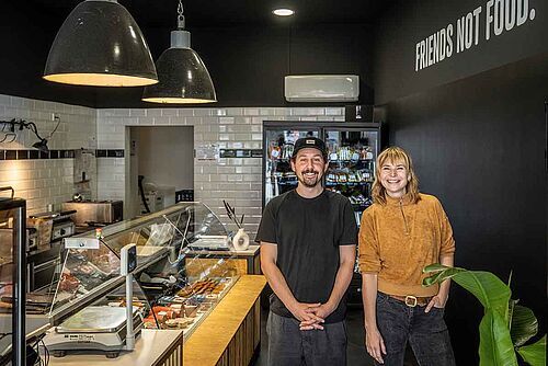 Sie grenzen sich bereits durch das vorangehende Adjektiv vegane Fleischerei ab. Unter der Wortneuschöpfung “Veganerei” kann sich niemand was vorstellen. So könnte auch ein Fachgeschäft für pflanzliche Ei-Alternativen heißen oder ein Restaurant in Berlin Friedrichshain. Es wird aber bewusst die Assoziation zu einer Fleischerei erzeugt. Denn hier gibt es die Produktarten und Einkaufserlebnisse, die Menschen aus einer Fleischerei kennen. Wenn Menschen aufhören Fleisch zu essen, dann i.d.R. nicht, weil sie auf Geschmack, Form, Konsistenz, Zubereitungsart, Würzung oder die Thekenberatung verzichten wollen. Hier wird dafür eine Alternative geschaffen.