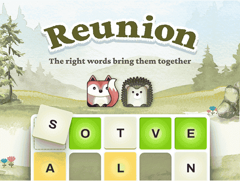 REUNION October 7, 2025 I solved it in 1️⃣4️⃣ moves! ⭐ ⭐ ⭐ 🦊 🦔 🎉 https://www.merriam-webster.com/games/reunion