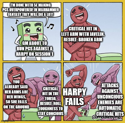 RPGMemes @ttrpg.network•Hot take: Strongest creatures in the setting shouldn't just be clowned by PCs with no resistance.