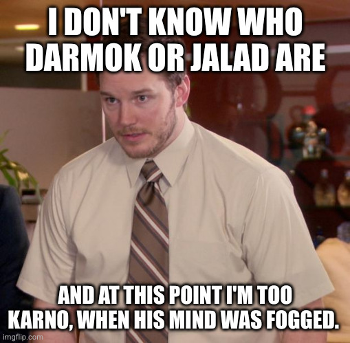 Though, tbh, while my Klingon is rusty, I need to work on my Tamarian. But as they say “Koltar, when he drowned in the swamp.”